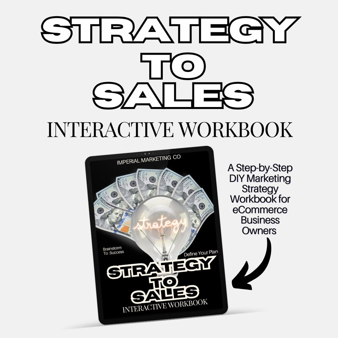 Transform your eCommerce business with our Strategy To Sales Workbook! This DIY step by step guide will help you develop an effective sales strategy to boost your profits. Say goodbye to guesswork and hello to a framework that will assist you in building a successful online business - time to conquer those sales goals! - Breakdown your target audience/buyer persona - Analyze your historical sales and email data - Set your business goal - Build an acquisition strategy - Outline your funnel strategy End this workbook exercise with a solid strategy to reach your business goal(s). All it takes is a solid plan and for you to test and analyze during the process. I've taken the guesswork out of it for you and built this resource for you to strategize and take action.